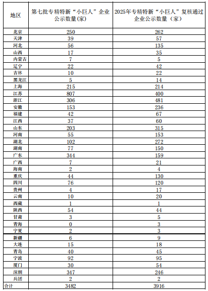 為深入貫徹習(xí)近平總書記關(guān)于激發(fā)涌現(xiàn)更多專精特新中小企業(yè)的重要指示批示精神,工業(yè)和信息化部開(kāi)展了2025年專精特新“小巨人”企業(yè)認(rèn)定和復(fù)核工作,已完成相關(guān)審核。10月20日,各地公示了第七批專精特新“小巨人”企業(yè)和2025年專精特新“小巨人”復(fù)核通過(guò)企業(yè)名單。